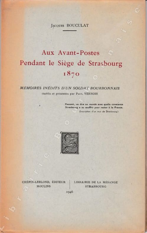Moulins, Crépin-Leblond, Strasbourg, Librairie de la Mésange, 1946 ; in-8, br. - 68pp.-2ff. Couverture un peu jaunie, mais bon état, non coupé.