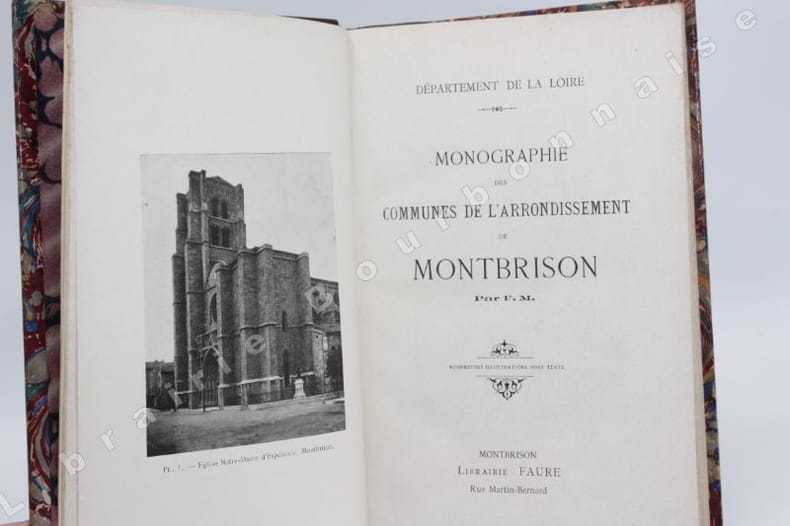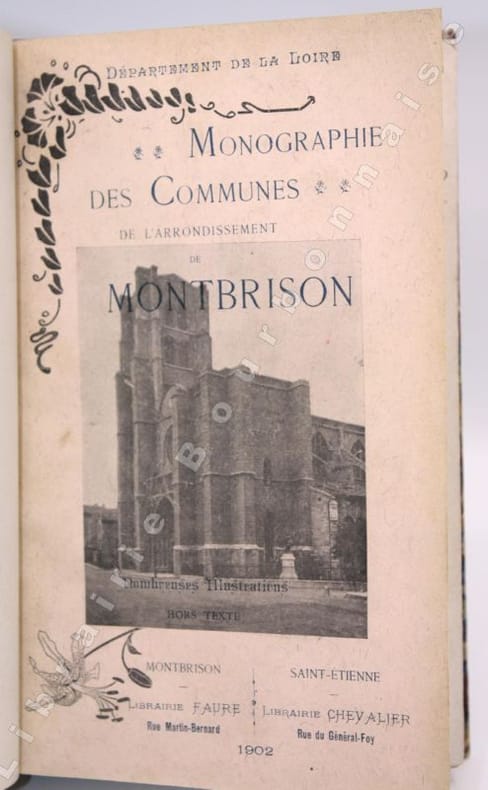 Montbrison, Librairie Faure, (et Librairie Chevalier à Saint-Etienne, sur la couverture), 1902 ; in-8, broché. 355pp. - 63 illustrations hors-texte. Pleine basane bleue, dos à 4 nerfs, titre doré. (Reliure moderne). Couvertures et dos conservés. Bon exemplaire.