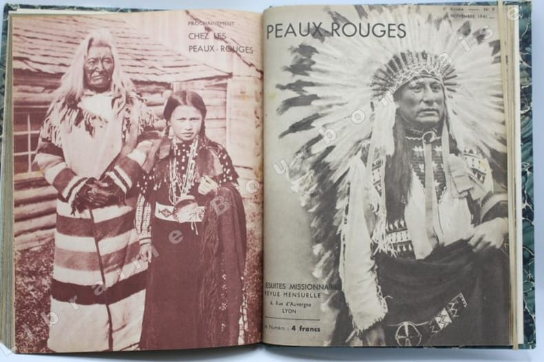 Lyon, Jésuites missionnaires, 1941 ; 1 volume in-4, réunissant 10 numéros (n° 1 Janvier-février ; n°2 Mars-avril. Année complète). pp. 187 à 440 pp. Très abondamment illustrés. Demi-toile verte, titre et date au dos. Chasse supérieure du premier plat légèrement rongé par un petit animal, si non très bel état.