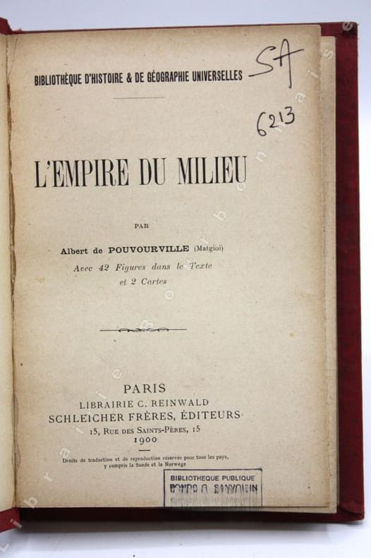 Géographie, histoire et civilisation chinoise par ce militaire qui fit plusieurs séjours au Tonkin et devint taoïste sous le nom de Matgioi.