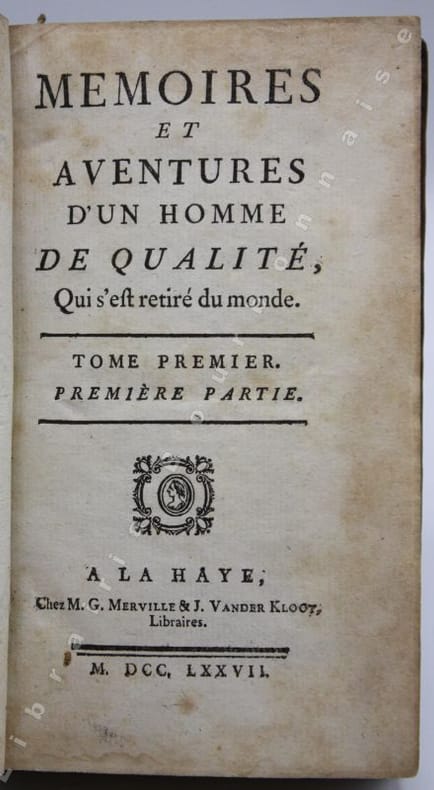 Publié la première fois entre 1728 et 1731, l'ouvrage est surtout célèbre pour contenir au tome 3 l' "Histoire du Chevalier Des Grieux et de Manon Lescaut".