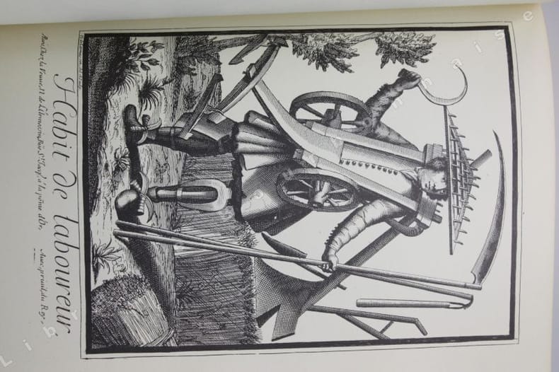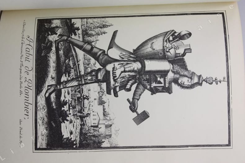 L'ouvrage reproduit les planches composées par Nicolas de Larmessin (ou son frère) à la fin du XVIIe siècle représentant des personnages composés avec les outils, les instruments, les accessoires et les productions de leurs métiers.