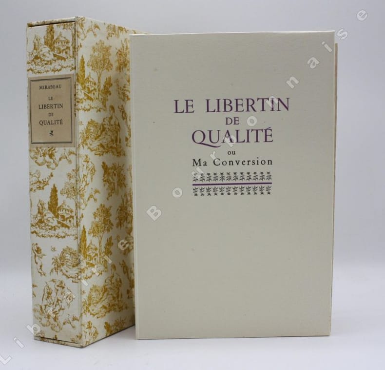 Mirabeau. Le libertin de qualite ou Ma Conversion Notable debauchery or Confessions. In French (ask us if in doubt)/Mirabeau. Le libertin de qualite ou Ma Conversion Znatnyy razvratnik ili Priznaniya. Short description: In French (ask us if in doubt).With 10 coloured etchings by Georges de Sainte-Croix of erotically explicit content. In French. Paris. Vialetay. 1955. 171 5c. il. 23 5x15.5 cm. We have thousands of titles and often several copies of each title may be available. Please feel free to contact us for a detailed description of the copies available. SKUalb23cf6d8619d2de93