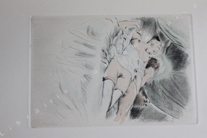 Paris, Editions Vialetay, "Le Panorama des Moeurs", 1955 ; in-8 en feuilles sous chemise et étui d'éditeur. 171 pp.-2 ff. 10 eaux-fortes en couleurs à pleine page par Gaston de SAINTE-CROIX. Bon état.