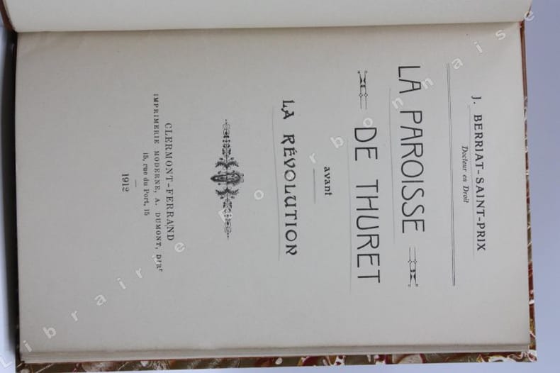 Edition originale, avec un envoi autographe de l'auteur. Ce dernier publiera l'année suivante une suite à son étude sur Thuret pendant la Révolution (Riom, Jouvet, 1913).