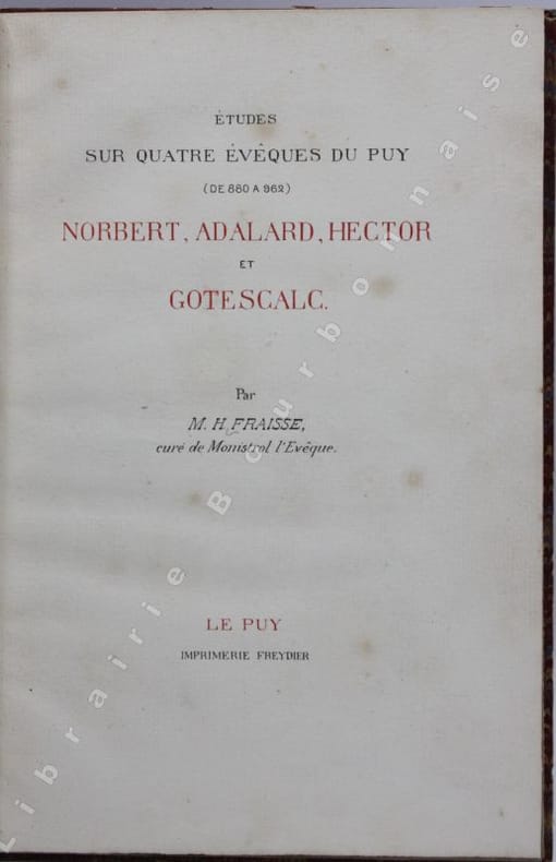 Réunion de 4 articles publiés par cet abbé historien du Velay, curé de Monistrol-sur-Loire, très certainement dans les "Tablettes historiques du Velay". page de titre imprimée spécialement pour la réunion de ces tirés à part.