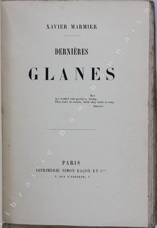 Bon état pour cet exemplaire du tirage à 100 exemplaires sur hollande. Ecrivain et grand voyageur, Xavier Marmier (1808-1892) a beaucoup contribué à la diffusion des littératures germaniques et scandinaves. Vicaire, V, 538