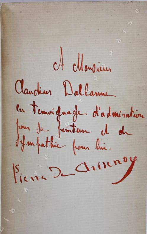Édition originale tirée à 250 exemplaires enrichie d'un envoi autographe de l'auteur, rédigé à l'encre rouge et imitant celles du "Connétable des lettres", au peintre lyonnais Claude Balbanne, "en témoignage d'admiration pour sa peinture et de sympathie pour lui". Pierre de Crisenoy a longtemps résidé à Querqueville près de La Hague dans la Manche à quelques kilomètres de Saint-Sauveur-le-Comte d'où était originaire Barbey d'Aurevilly.