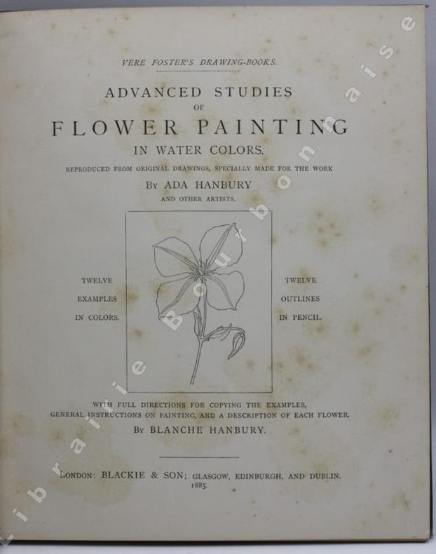 With full directions for copying the examples, general instructions on painting, and a description of each flower. By Blanche Hanbury. EDITION ORIGINALE.
