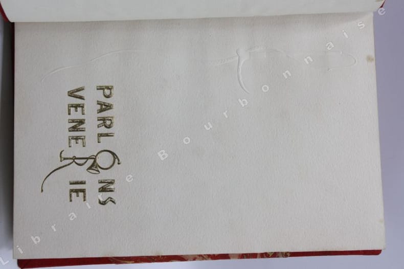 Paris, "Édité par l'auteur", 1950 : in-8. 1 f.-281 pp.-2 ff. Demi-percaline rouge à coins, dos lisse muet. Couverture avec titre doré imprimé en relief conservé. bandeau d'éditeur avec un texte du Duc de Brissac partiellement conservé. Avec un signet marque page à la marque de Guerlain. Très bon état.