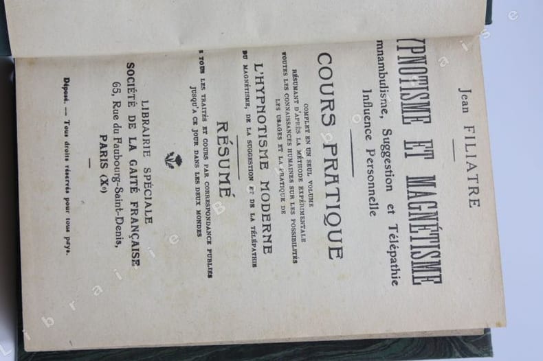 Paris, Librairie spéciale Société de la Gaîté Française, s. d. [1933] ; in-12. XXII-403 pp.-22 pp. (catalogue commenté de la Bibliothèqie de philosophie spiritualiste moderne). Demi-percaline verte, dos lisse muet. Papier un peu jauni. Bon état.