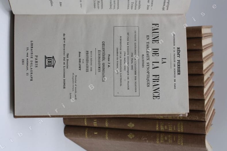 Ensemble complet de tout ce qui a paru."Conçu sur le même plan que les flores, l'ouvrage permet une détermination aisée et rapide par l'emploi de clefs dichotomiques qui offrent au lecteur le choix entre deux où trois caractères opposés. Et ce choix se trouve facilité par les nombreuses figures de détails claires et simples, qui accompagnent le texte, ainsi que par une courte description de chaque espèce". (Revue pédagogique Année 1926, pp. 477-478).1A Protozoaires, Coelentérés, Spongiaires. - 1B Vers, sangsues, ténias. - 2 Arachnides, crustacés. - 3 Myriapodes (libellules, perles, termites...). - 4 Hémiptères, lépidoptères. - 5 et 6 Coléoptères. - 7 Hyménoptères. - 8 Diptères. - 9 Bryozoaires, brachiopodes, mollusques. - 10 Vertébrés (poissons, batraciens, reptiles, oiseaux, mammifères).