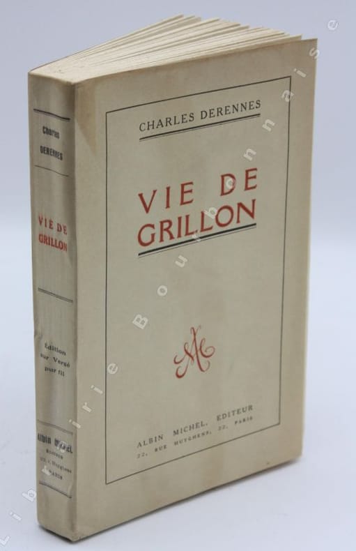 Edition originale tirée à 110 exemplaires, un des 25 sur Hollande (après 10 sur Japon). La vie de Grillon est le premier des trois volumes qui compose le "Bestiaire sentimental" avec La Chauve-Souris en 1922 puis "Émile et les Autres" en 1924, pour lequel il a reçu le prix Femina cette année là. "J'ai commencé cette série dessais par l'étude du Grillon, c'est-à-dire dun insecte chez qui, comme chez tous les insectes, la personnalité n'étant plus nécessaire à la conservation de la race, est abolie. Dans La Chauve-Souris, jai tenté de montrer à quel point des animaux très facilement observables, mais peu observés jusqu'ici, reproduisent certains traits même moraux de l'humanité supérieure. Dans Émile et les autres, étudiant divers chats et une rainette, j'ai opposé à un batracien charmant, plaisant aux yeux, mais encore complètement dépourvu de personnalité individuelle, les gracieux petits félins domestiques, engeance énigmatique et séduisante dont nul échantillon ne ressemble foncièrement à un autre. Il n'y a pas d'être plus personnel qu'un chat, après l'homme et près de l'homme, - les chiens se modelant trop sur nous" (Derennes, Dieu, les Bêtes et Nous. Éditions des Portiques, 1930, p. 133-134).