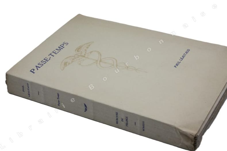 ed. Mercure de France 1929 et 1964 in-8 br., edition originale, ex. numerote sur pur fil Lafuma (2e papier), marges conservees/in-8 br., couv. rempliee, edition originale, ex. hors-commerce sur velin de Madagascar (tirage de tête), le premier Passe-temps est paru pour consoler Alfred VALLETTE qui voulait reediter Le petit ami, ce à quoi s’opposait Leautaud… le deuxieme, commande par Gaston GALLIMARD en 1941, resta à l’etat de projet. C’est Marie DORMOY qui se chargea apres la mort de l’auteur de sa composition, l’ensemble des 2 vol. est forme de textes courts publies en plaquettes à tirage restreint ou en revues, avec des inedits dans le T.2, les deux volumes