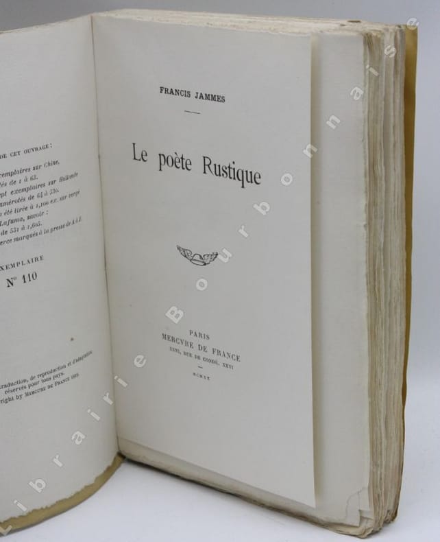 Mercure de France, 24 janvier 1920, imprimerie Orléanaise - In-8° en feuillets cousus à toutes marges, édition Originale sur Hollande Van Gelder justifié 420, 291pages - L'exemplaire serait à relier car présentant une fente en tranche, ses plats n'étant pas par ailleurs d'une grande fraîcheur.