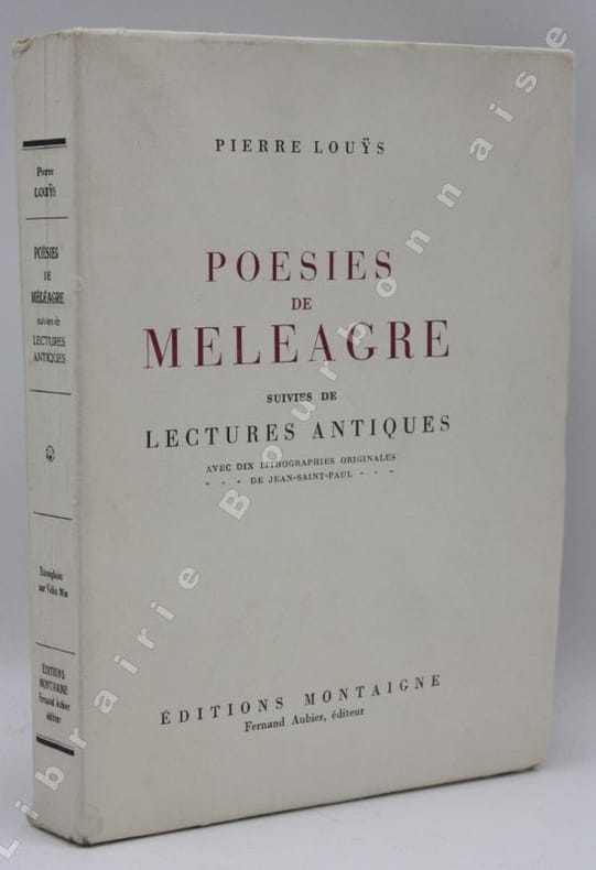 Edition tirée à 1100 exemplaire un des 890 sur vélin de Olin. Avec une notice sur Pierre Louÿs traducteur par Jules Mouquet, et 10 lithographies hors-texte en noir par Jean-Saint-Paul.