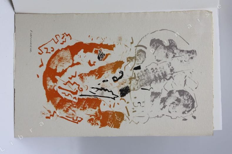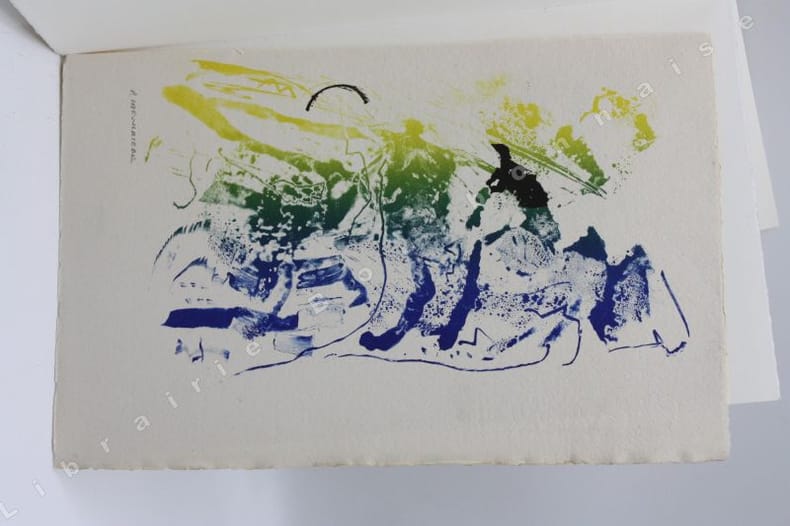 Montfermeil, Jack Renaud, 1972 ; in-8 (28,5 x 18,5 cm), en feuilles sous couverture à rabats. 12 ff. non chiffrés - 2 gravures originales en couleurs hors-texte. Texte imprimé à l'encre violette. Très bon état.