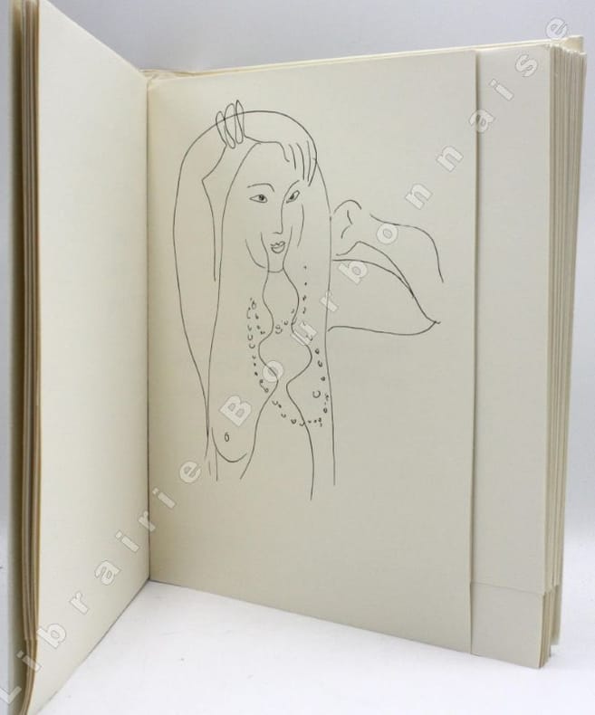 La présente édition, hors commerce, à tirage stictement limité et numéroté, est réservée aux Membres-Associés du Club Français du Livre, composée à la main en Garamont corps 24, d'après les maquettes de Jacques Daniel, sur grand papier pur fil du Marais. llustré de 15 dessins en noir à pleine page de Henri Matisse. BEL EXEMPLAIRE. Photos sur demande.