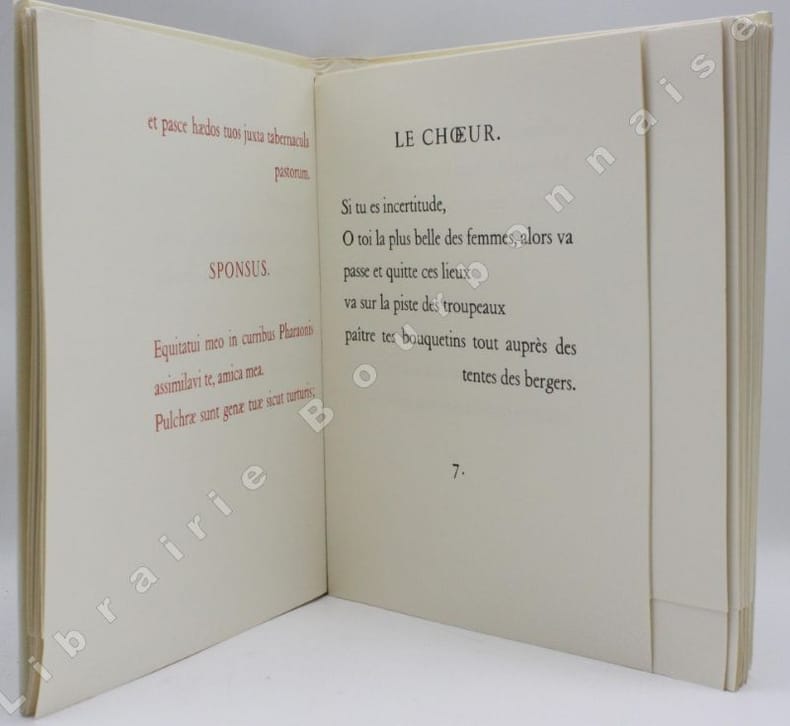 Paris, Le Club Français du Livre, 1962. Grand in-8 (20 x 23,5 cm), en ff, couverture rempliée, non paginé, ex à grandes marges (non rogné). Etui. Texte latin imprimé en rouge en regard du texte français imprimé en noir.