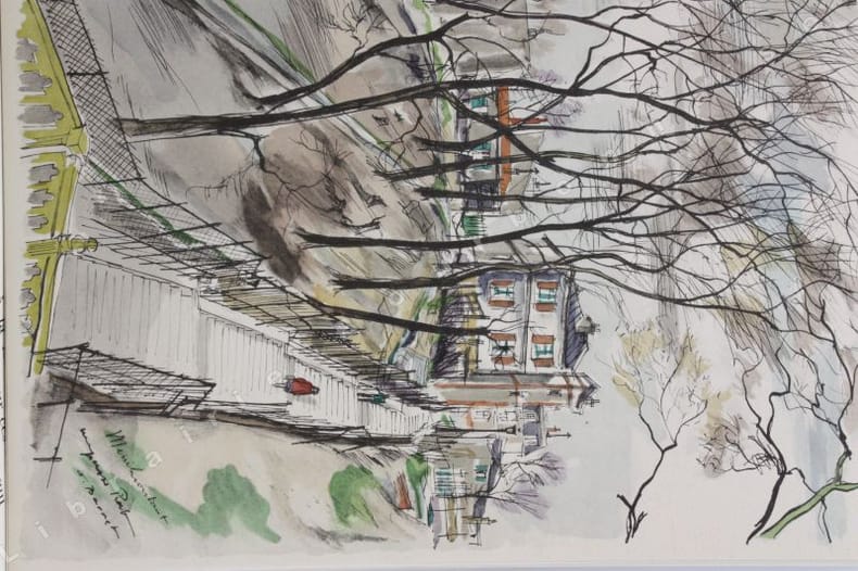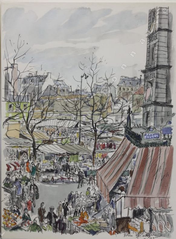Edition originale tirée à 1350 exemplaires numérotés sur vélin blanc, celui-ci enrichi d'un grand dessin original au crayon et craie grasse, dédicacé, par l'artiste. Elle est illustrée de dix aquarelles de Gaston Barret reproduites en couleurs : Rue Duchefdelaville - Place Lucien Herr - Quai d'Orléans - Hôtel de Sens - Place d'Aligre - Canal Saint-Martin - Impasse Piat à Ménilmontant - Eglise Saint-Germain de Charonne - Place du Tertre- Rue Berton.