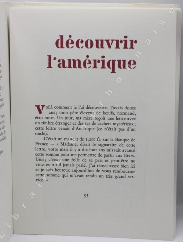 1960. 349 x 250 mm, 178 pp.-(21) ff., ill. n/b et couleurs en pleine page et double page. En feuilles sous chemise rempliée, accompagnée d'une suite des 28 reproductions des lithographies de Fernand Léger pour illustrer mes voyages, également sous chemise rempliée avec une illustration sur la première de couverture, sous chemise demi-imitation cuir et étui. Très bel exemplaire. "Cette édition en fac-similé 25 x 35 cm a été tirée avec l'autorisation des Editeurs Français Réunis, à Paris, sur papier Vélin bouffant des Papeteries de Hauteville. N° 4347".