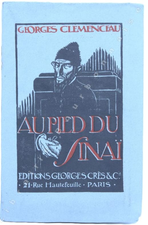 Paris. H. Floury 1898 107 pp. In-4. Broché. Bel état. 1 volume. ÉDITION ORIGINALE du recueil des six contes de Clémenceau réunis sous le titre Au pied du Sinaï. Tirage limité à 380 exemplaires. Le nôtre non numéroté sur vélin d'Arches, avec une suite sur Chine des 10 planches.Très belle édition de ce livre de deux figures monumentales des années 1890, paru en pleine affaire Dreyfus, quelques mois seulement après la lettre de Zola dans L'Aurore. De nombreux textes d'aspect caricatural par le dreyfusard Clémenceau superbement illustré par l'anti-dreyfusard Toulouse-Lautrec.Un superbe travail d'illustration pour un témoignage cristallisant une époque.
