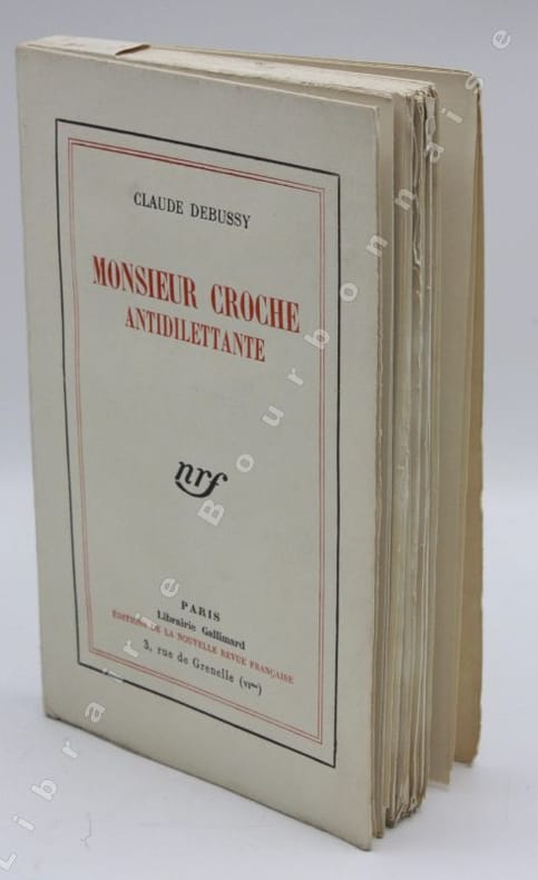 Tirage de tête imprimé à 200 exemplaires sur vélin pur fil Lafuma Navarre. Cette réunion d'articles publiés par le compositeur à partir de 1901 dans la "Revue Blanche" sous le pseudonyme de Monsieur Croche avait précédemment parue en collaboration chez Dobron-Aîné et la NFR, sous l'adresse des "Bibliophiles fantaisistes", en 1921, tiré à 500 exemplaires. Après la Revue Blanche, Debussy publie dans le journal Gil Blas quelques chroniques de janvier à juin 1903 ; il faut ensuite attendre 1912 pour que Monsieur Croche reprenne du service dans la revue S. I. M de 1912 à 1913.