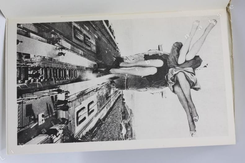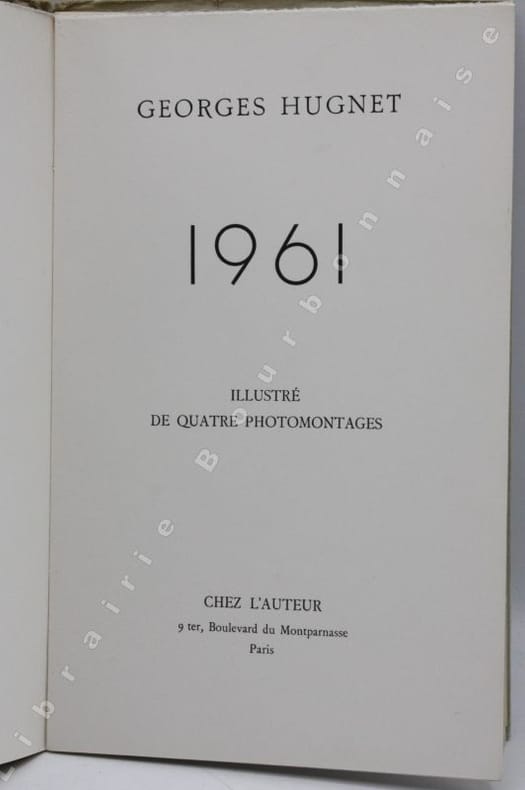Edition originale tirée à 573 exemplaires numérotés, un des 500 sur vélin, illustrés de 4 photomontages de l'auteur. 1961 est un nombre "miroir" qui se lit de la même manière si on le retourne, comme 1691 ou 1881... et ainsi l'auteur joue avec les mots, les tourne et les détourne.