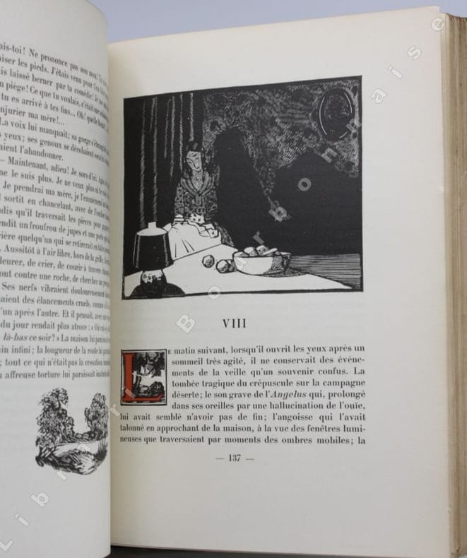 P., G. & A. Mornay, 1923 ; petit in-8. Frontispice-2 ff.-444 pp.-3 ff. Plein chagrin brun, dos lisse orné du titre et de roulettes dorés, tête dorée, encadrements de filets dorés sur les plats. Couverture et dos conservés. Vignette ex-libris "Je Le Roffray" gravée sur bois par Patrick Lubin. Très bel exemplaire.
