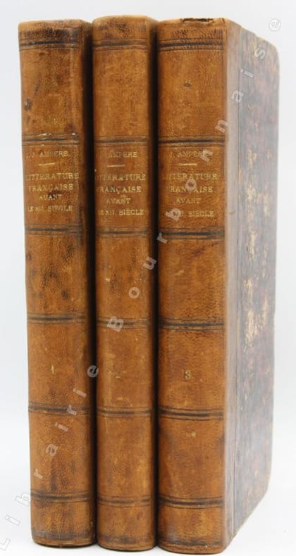 Édition originale de cet ouvrage sur la littérature allemande, slave et scandinave, y compris les essais sur Goethe, Hoffmann, l'Edda et les Sagas. On y trouve aussi les mémoires de l'auteur sur son voyage de Berlin à Copenhague Tome I, depuis l'établissement des Grec et des Romains dans la Gaule jusqu'à l'arrivée des Barbares - Tome II. invasion des barbares à Charlemagne - Tome III, depuis Charlemagne jusqu'au XIIe siècle 3/3 vols complet, vols, gd in-8, 215x135, reliés demi cuir, bien frais, 452, 504 & 420pp Paris Chez Hachette 1839 ref/139