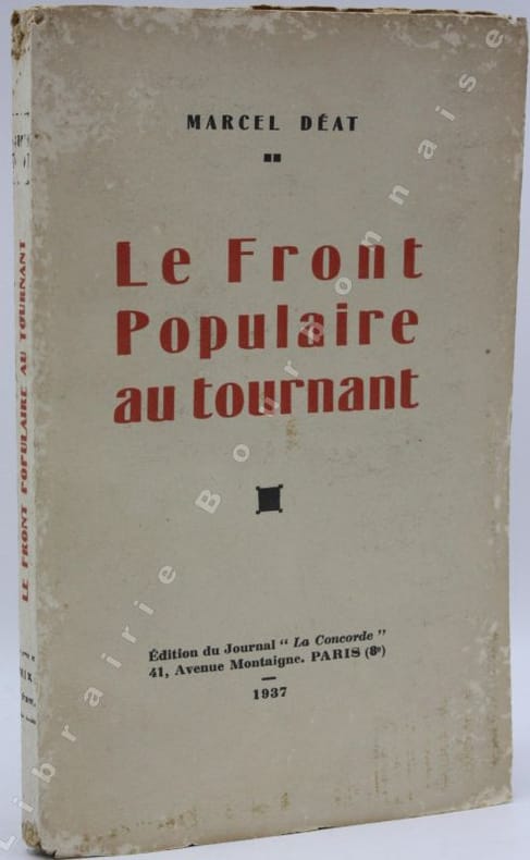 Edition de l'année de l'originale, mention de mille. Quelques rousseurs sur les plats. Rare envoi autographe daté et signé de Marcel Déat à Emile Périn. - Photographies et détails sur www.Edition-Originale.com -