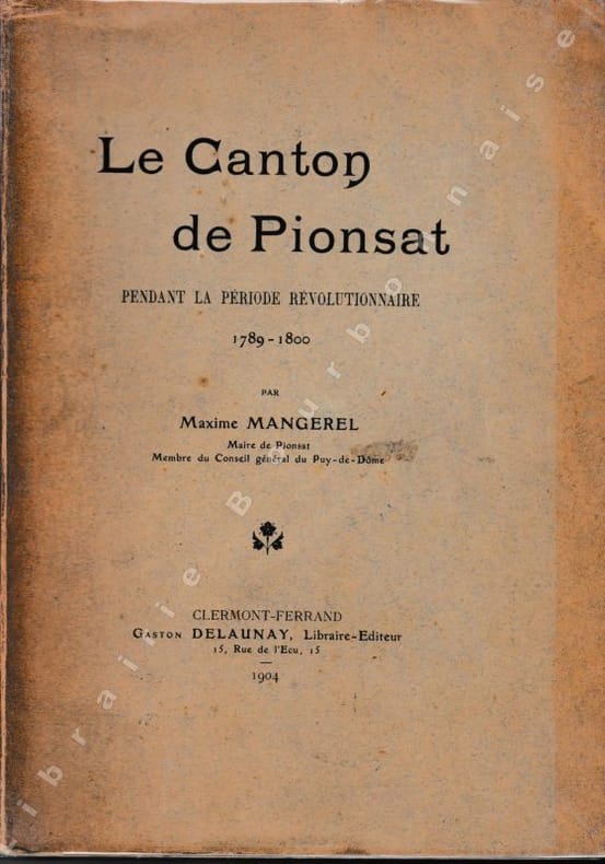 L'auteur avait été maire de la commune de Pionsat. Il retrace la vie de ce gros village (environ 1700 habitants en 1791) pendant les tourments de la Révolution. Tous les aspects administratifs, politiques, économiques, religieux, sociaux, sont passés en revue et font de cette monographie une étude incomparable de précision, qui donne au concept de la Révolution française une dimension concrète à la taille d'un gros bourg d'Auvergne.