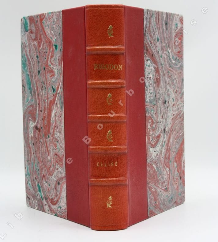 Paris, Gallimard, 4 mars 1969 ; in-8. 2 ff.-(I-VI)-(1f)-pp. 7 à 318.- 2 ff. Demi-chagrin vermillon, dos à nerfs, titre et fleurons dorés, couverture et dos conservé (reliure de Nadine Touches, en religion sur Paule Andrée de la Croix au monastère Sainte Claire à Montbrison - Peut être une descendante de Georges Destouches une descendante de Céline ?). Dos légèrement éclaircit. Bel exemplaire.