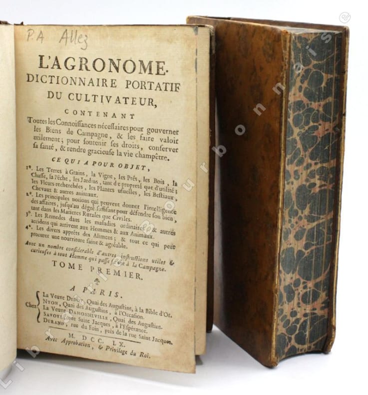 Première édition. L'auteur, P.-A. Alletz est un polygraphe touche-à-tout et compilateur ; Il est l'auteur d'un dictionnaire théologique d'un autre de philosophie ou encore d'un ouvrage touchant à la médecine : "L'Albert moderne". On retrouve dailleurs dans le présent "Agronome" nombre de recettes de remèdes qui viennent compléter les conseils sur le jardinage, l'élevage, la médecine vétérinaire, la chasse, la cuisine, la vigne et le vin.