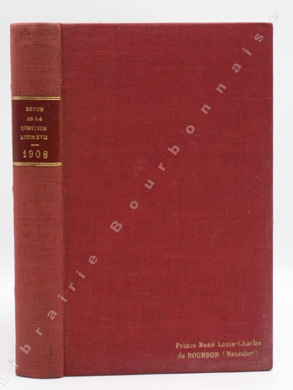 Paris, Daragon, 1908 ; 6 fascicules doubles relié en un volume in-8. 292 pp. Couvertures conservées. Pleine toile vermillon, dos lisse, pièce de titre rouge, supra ex-libris en caractères dorés sur le coin inférieur du plat supérieur. De la bibliothèque de Louis-Charles Bourbon (Naundorf), descendant Karl-Wilhelm Naundorff qui se prétendait être Louis XVII.