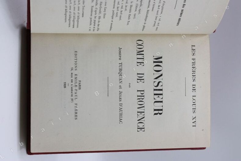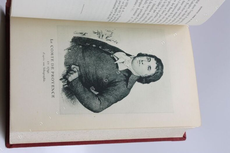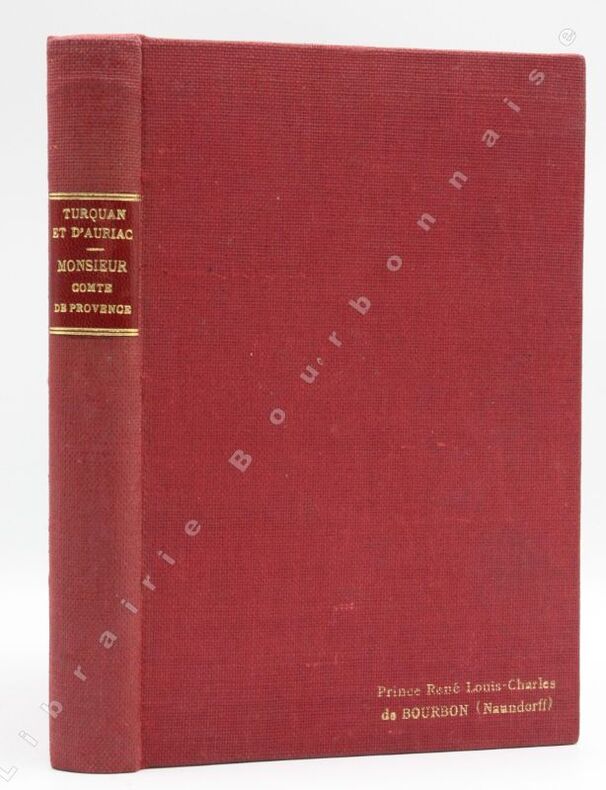 Paris, Emile-Paul, 1928 ; in-8. 346 pp-1ff.-12 planches hors-texte en noir. Pleine toile vermillon, dos lisse, pièce de titre rouge, supra ex-libris en caractères dorés sur le coin inférieur du plat supérieur. De la bibliothèque de Louis-Charles Bourbon (Naundorf), descendant Karl-Wilhelm Naundorff qui se prétendait être Louis XVII. 40