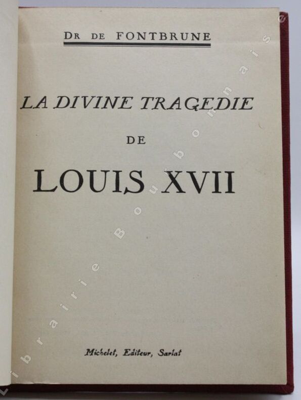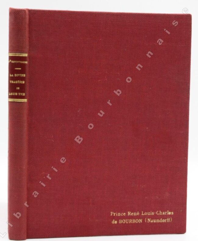 Sarlat, Michelet,1949 ; in-8. 4 ff.-146 pp.-1 f. Pleine toile vermillon, dos lisse, pièce de titre rouge, supra ex-libris en caractères dorés sur le coin inférieur du plat supérieur. De la bibliothèque de Louis-Charles Bourbon (Naundorf), descendant Karl-Wilhelm Naundorff qui se prétendait être Louis XVII.