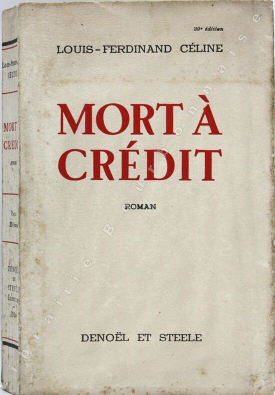"Édition originale. Exemplaire du service de presse (le tirage sur grands papiers consistait en 47 Japon, dont 22 H.C., 65 Hollande, dont 30 H.-C., 110 pur fil, dont 25 H.-C. et 790 alfa, dont 20 H.C.). Seuls les exemplaires hors commerce contiennent le texte intégral; tous les autres, y compris ceux sur grands papiers, portent comme ici la mention suivante : ""À la demande des éditeurs, L.-F. Céline a supprimé plusieurs phrases de son livre, les phrases n'ont pas été remplacées. Elles figurent en blanc dans l'ouvrage."" L'écrivain, traducteur et critique Christophe Claro, en 2016, pour le 80e anniversaire du livre, est revenu, dans sa chronique Le Clavier cannibale, sur la portée du geste célinien consistant à refuser d'invisibiliser la censure par l'éditeur des passages les plus ""obscènes"", prenant ainsi le lecteur à témoin, le renvoyant plus encore, paradoxalement, à son statut de voyeur: ""Quand paraît, en 1936, Mort à Crédit, le lecteur a plus d'une raison d'être secoué. La première, évidente, est l'avancée par rapport au Voyage au bout de la nuit : l'auteur a remonté le temps, remonté les ressorts, et toute la sainte machine tremble et crache de partout, les points ne sont pas seulement de suspension, mais d'explosion […]. L'autre raison d'être secoué est plus structurelle: au fil de la lecture, on tombe sur des trous, parfois un ou deux mots, parfois plusieurs lignes, des passages entiers, des tranchées vives dans le champ de guerre qu'est le texte. La phrase s'interrompt, en apnée syntaxique, puis redémarre après un espace muet, secouée parfois par d'autres cahots, hoquets. […] Face au vide laissé, au vide visible, le lecteur est comme en suspens, on lui vole quelques secondes la vue, mais dans la découpe pratiquée il sait que s'agite la suite, que ça continue, pulse, défonce, il pourrait presque même deviner…"" Envoi autographe signé de Céline: A Gérard Bauer en cordial hommage LF Céline Lorsque paraît Mort à crédit, le talentueux Gérard Bauër (1888-1967) est à un tournant crucial de sa carrière, ayant débuté seulement l'année précédente la fameuse chronique qu'il rédige pour Le Figaro sous le titre le Billet de Guermantes et qu'il signe de ce proustien patronyme. C'est en effet cette chronique qui propulse celui qui est aussi, accessoirement, le petit-fils naturel d'Alexandre Dumas, et un spécialiste du romantisme, au rang d'influence incontournable dans le monde des lettres. Bel exemplaire bien établi par Gauché. Dauphin et Fouché, Bibliographie des écrits de Louis-Ferdinand Céline, 36A1."