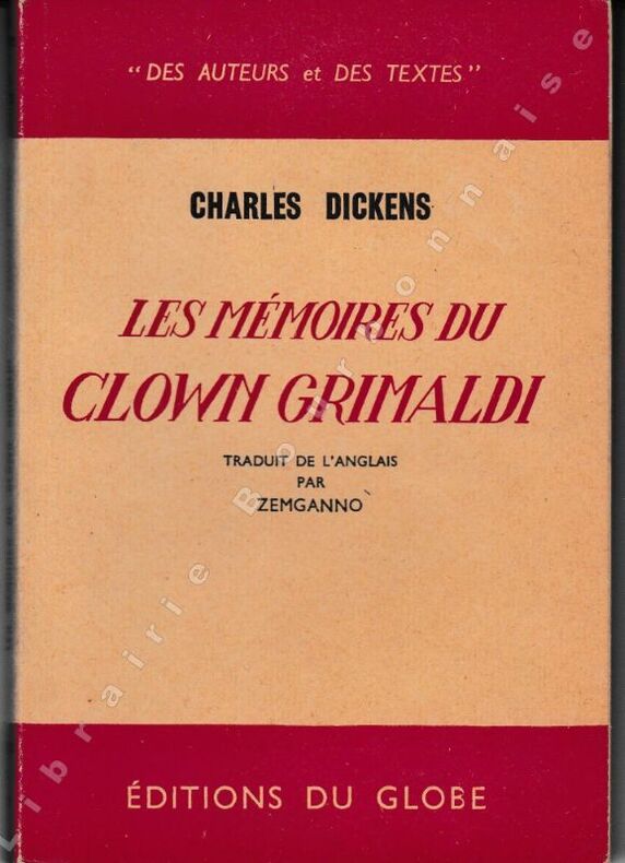 Edition originale de la traduction française. "Joseph Grimaldi (1778-1837) est un des premiers mimes qui peut revendiquer l'appellation de clown. Né dans une famille de danseurs italiens et immigrés en Angleterre, Joseph dit Joe joue dès 1782, à quatre ans, les premiers rôles où son art es grimaces offrent aux londoniens une évasion et une occasion de se moquer de leurs propres travers. Travailleurs infatigable Joe Grimaldi va pendant quatre décennies se produire sur les planches du Sadlerss Wells, un théâtre dans lequel il va construire sa notoriété en composant son personnage du Clown Joey et devenir lun des plus grands clowns britannique du début du XIX° siècle. Voulant laisser une trace de son passage, et à la veille de mourir en 1837, le clown Grimaldi dicte à son secrétaire une centaine de pages autobiographique, puis confie le manuscrit à un ami, qui s'appliquera à le condenser avant de le présenter à un éditeur. Celui-ci, profitant de la liberté que lui rend la mort de l'auteur, le porte aussitôt à Charles Dickens. Dépositaire des Mémoires de Grimaldi, lauteur dOliver Twist pense quil peut en les retravaillant en tirer un ouvrage à succès où Grimaldi deviendra un personnage de roman, un pitre irrésistible sorti tout droit de la comedia dellarte. La vie du grand Joe, sa carrière, nous livrent quelques-uns des plus curieux aspects des murs britanniques, et en semant bien des incidents étranges, des rencontres dramatiques, des péripéties bizarres dans l'existence où ce clown semble s'être complu à lui faire un sort extraordinaire". (cirk75gmkg). (Une nouvelle traduction de ce livre a été donnée par Hoepffner en 212 chez NIL).