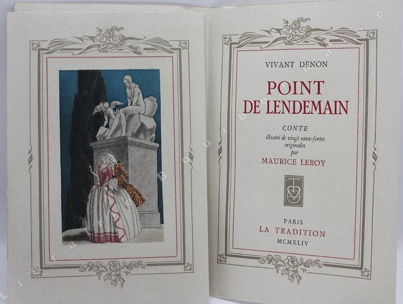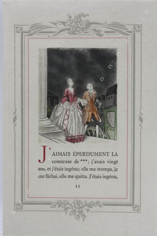 Edition tirée à 980 exemplaires sur Ingres vergé d'Arches, un des 830 ne comportant pas de suite supplémentaire. Eaux-fortes en couleurs comprises dans la pagination, inscrites comme le texte, dans un encadrement de filets gris et rouges orné de felurs et de flèches.