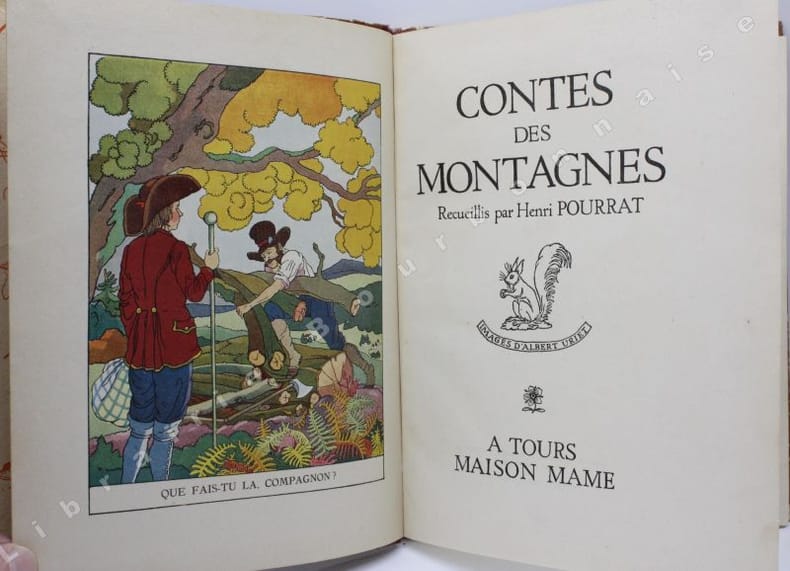 grand in 8 cartonnage d’éditeur,dos demi-toile rouge,plats cartonnés illustrés en couleurs.Frontispice illustré en couleurs d’Albert URIET titre,63 pages,8 illustrations en couleurs hors-texte et 18 dans le texte en deux tons d’Albert URIET Mame 3ème trimestre 1946.Il manque une page de garde illustrée, mors supérieur droit réparé.Sinon bon exemplaire,charmantes illustrations,coloris frais.