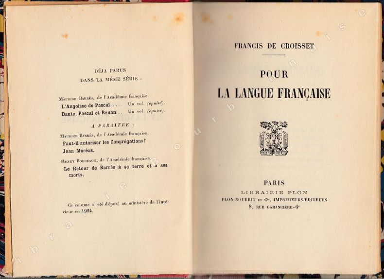Edition originale, avec un envoi autographe de l'auteur au Marquis Fressinet de Bellanger. Texte d'une conférence donnée à Gand en 1923, à l'invitation de l'Association flamande pour la vulgarisation de la langue française, qui célébrait son 25e anniversaire.