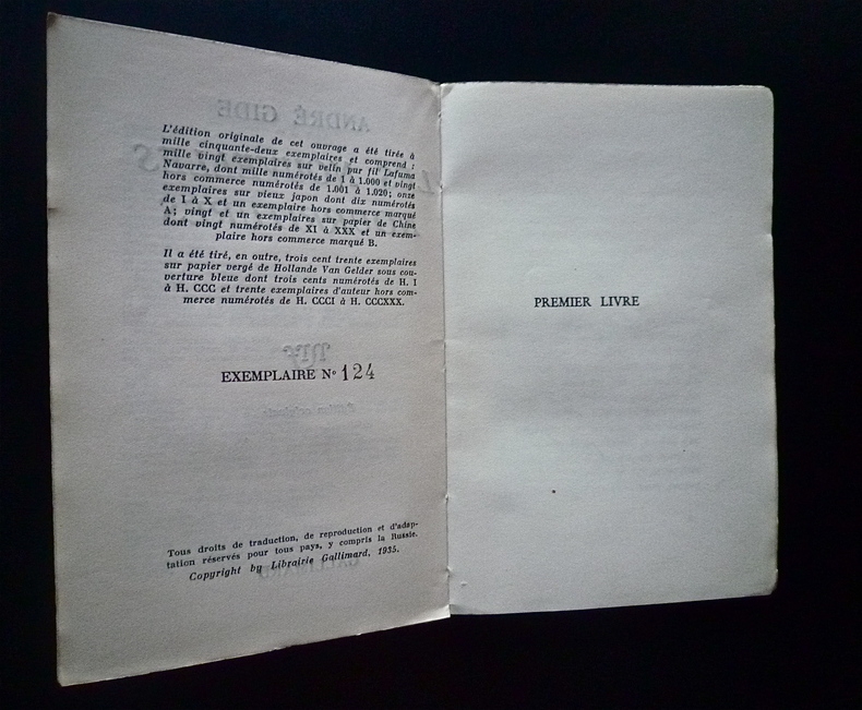 Gallimard, 22 octobre 1935, in-16 (17x11cm), 163 pages, broché.