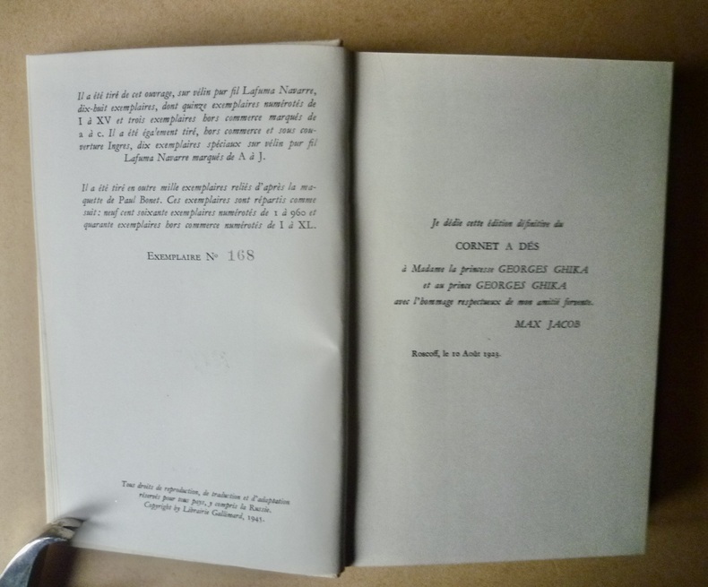 1/1000 exemplaires numérotés (n° 168). Première édition en cartonnage NRF. Très bel exemplaire.