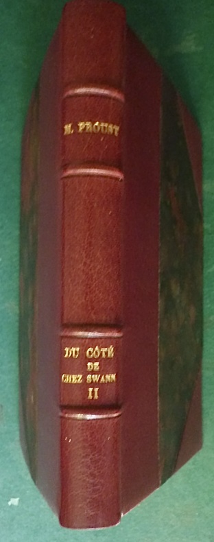 Paris, Gallimard, 1926-1936, 18 volumes in-8 (230x145mm), reliés 1/2 maroquin à coins, dos à 4 nerfs, auteur et titre gravé or, tranche supérieure dorée, couvertures et dos conservés. Exemplaire numéroté sur Hollande Pannekock filigrané "à la gerbe". A la recherche du temps perdu (15 volumes) suivi de: Pastiches et mélanges, Les Plaisirs et les Jours, Chroniques (3 volumes).