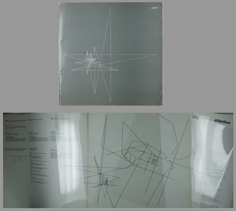 Bucher, Spirale, Eine Künstlerzeitschrift 1953-1964, S. 126-129 und 211-213. - Originalausgabe. - Erschien in einer Auflage von 1000 Exemplaren, von Marcel Wyss im Impressum signiert. - Ohne die 10 Anzeigen-Seiten. Umschlag berieben und eselsohrig.