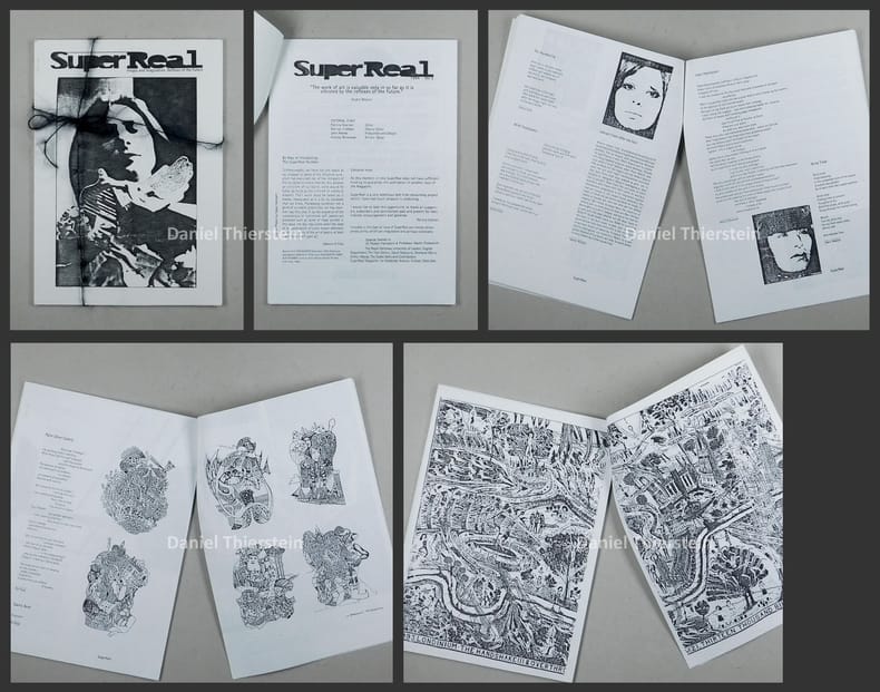 Die Nullnummer erschien 1992 mit dem Untertitel "The British surreal journal" und die Nummer 1 ebenfals 1992 mit dem Untertitel "The British journal of surrealism". - Beiliegend 2 gefaltete Grafiken, 2 Flyer und 1 Postkarte (Collage von Daniel Morgenstern).