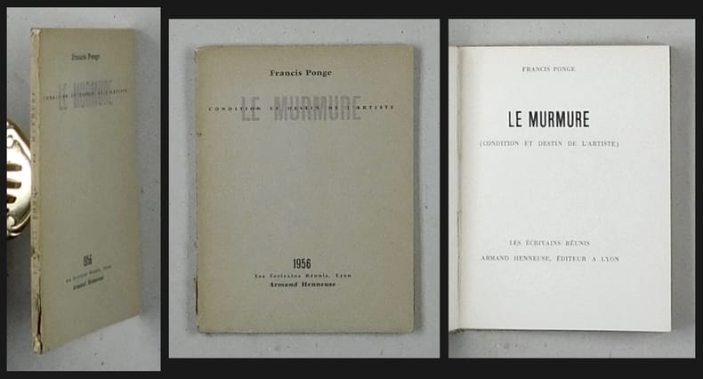 Edition originale. - Exemplaire sur papier courant (après 20 expl. num. sur Johannot). - Dans ce texte, le fond et la forme se confondent: le texte n'est pas seulement une description du murmure, mais aussi un exemple de celui-ci. Petit défaut au dos.