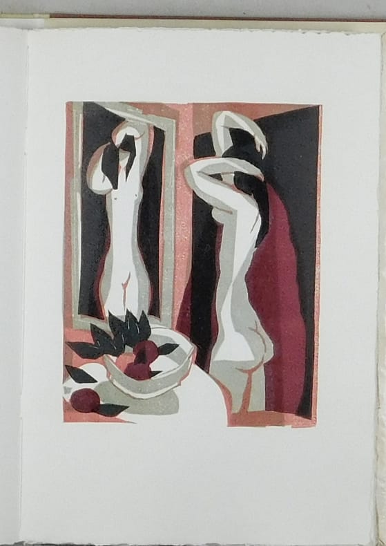 Zürich Arcade-Presse. 1966. 27,5x19 cm. 63 S., 4 Bl. Mit 9 ganzseitigen farbigen Originalholschnitten. Lose in Originalbroschurdecke und Originalhalbpergamentdecke.