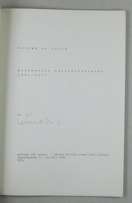 Bern, Artists Press Urs + Rös Graf 1974. 21x29,5 cm. 20 Bl. mit 18 Drucken. Halbleinwandband.